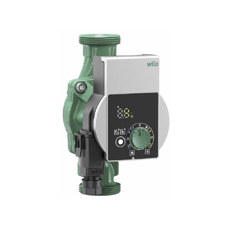 Diseño Circulador de rotor húmedo con conexión roscada, motor EC autoprotegido y regulación electrónica de potencia integrada.