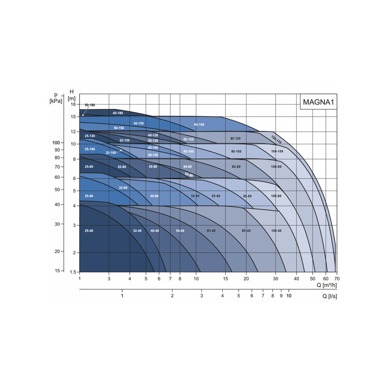 El MAGNA1 es la opción ideal y eficaz para la mayoría de las aplicaciones (9 curvas de funcionamiento), incluyendo: