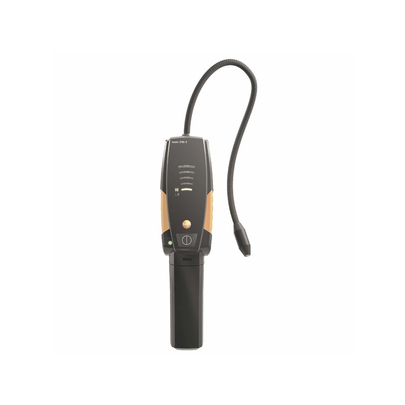 El detector de fugas TESTO 316-3, diseñado para que el técnico pueda llevarlo a todas partes, ofrece un tiempo de funcionamiento continuo de 16 horas. Puede utilizarse en un amplio rango de temperatura, desde -18°C hasta 50°C.